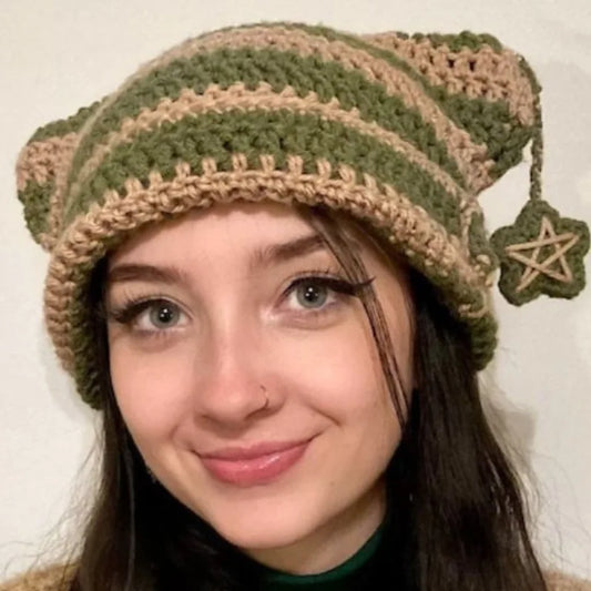 Y2K Crochet Stripe Pattern Cat Ear Hat Handmade Soft Winter Warmer Knitted Hat Cold Winter Presents for Students Teenagers