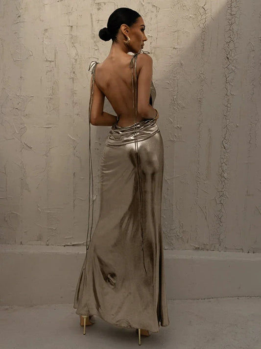 Metallic Backless Maxi
