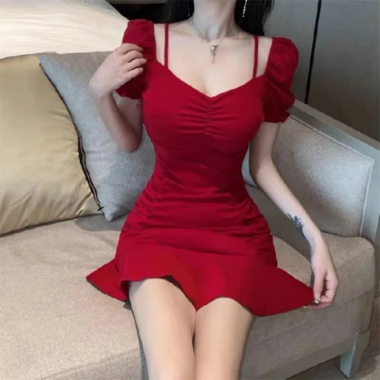 Mini Red Dress with Slit