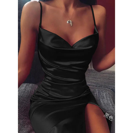 Sleeveless Thigh Slit Satin Dress