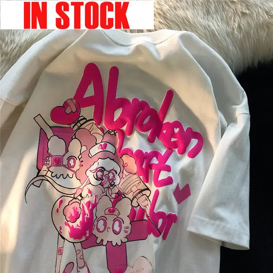 Kawaii Women Tshirts Harajuku Anime Graphic Tees Streetwear Top Fashion Summer Short-sleeved Y2k Tops Oversize T-shirt