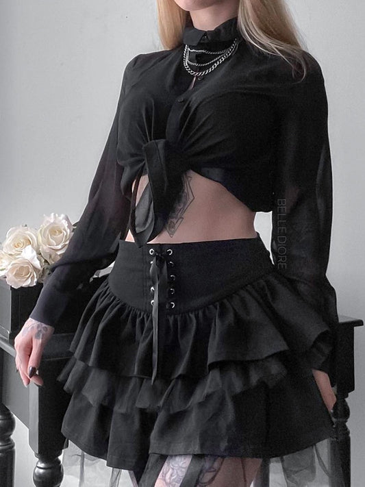 Black Mini Skirt Gothic Women Fairy Grunge High Waist Loose A-line Skirt Shorts Goth Egirl Summer Harajuku Streetwear