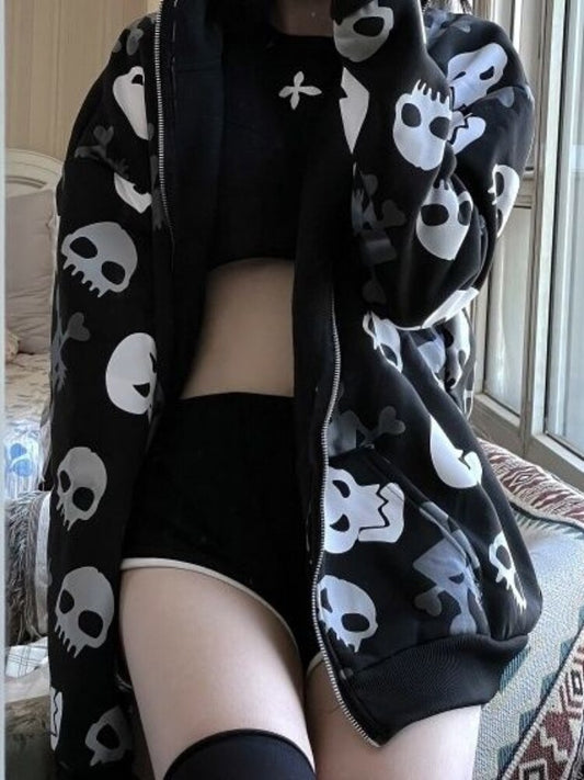 Cartoon Skulls Zip-Up Hoodie